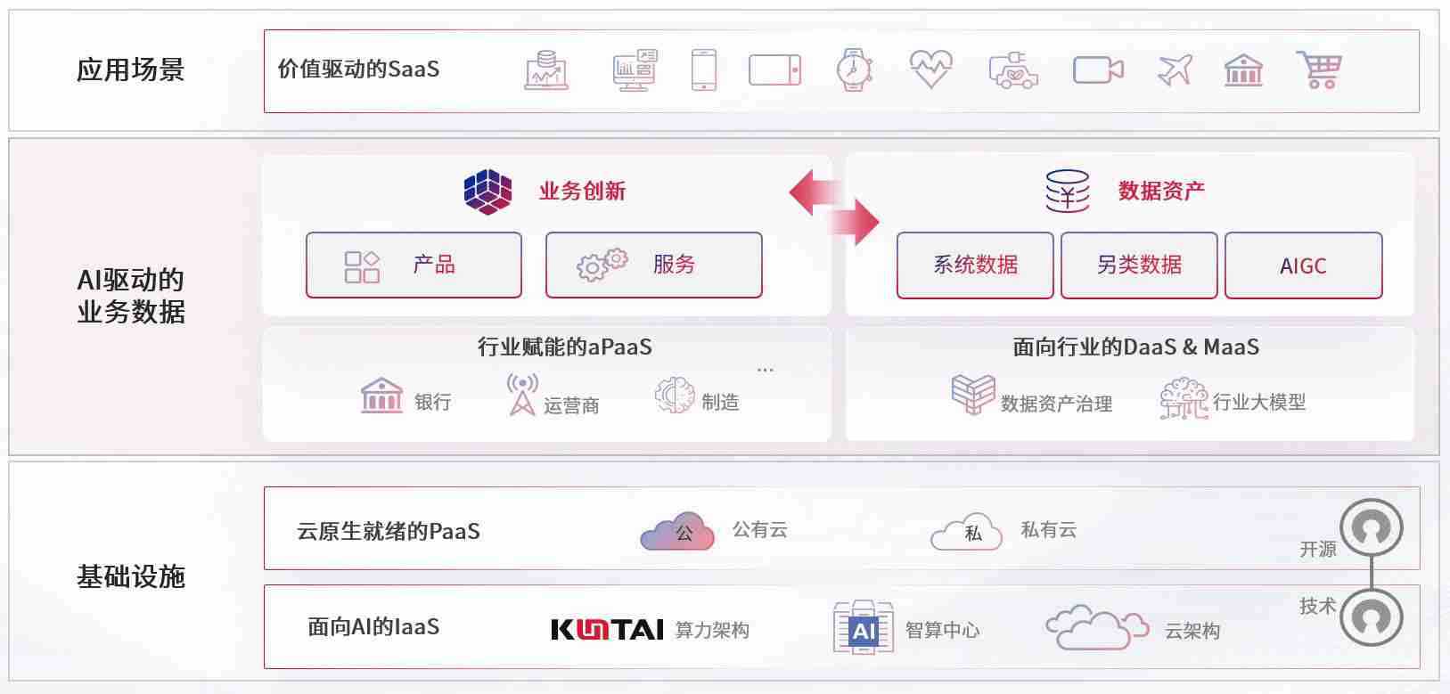 数字时代,,,,围绕企业数字化转型的关键要素,,,,7790必发集团数码开创性的提出数云融合战略和技术体系框架,,着力在云原生、、数字原生、、、AI原生和信创产业上架构产品和服务能力,,,为处在不同数字化转型阶段的快消零售、、、汽车、、、、金融、、、医疗、、、政企、、教育、、、运营商等行业客户提供泛在的敏捷IT能力和融合的数据驱动能力,,,,构建跨界融合创新的数字业务场景和新业务模式,,,助力企业级客户建立面向未来的核心能力和竞争优势,,,,全面推动社会的数字化、、智能化转型升级。。。